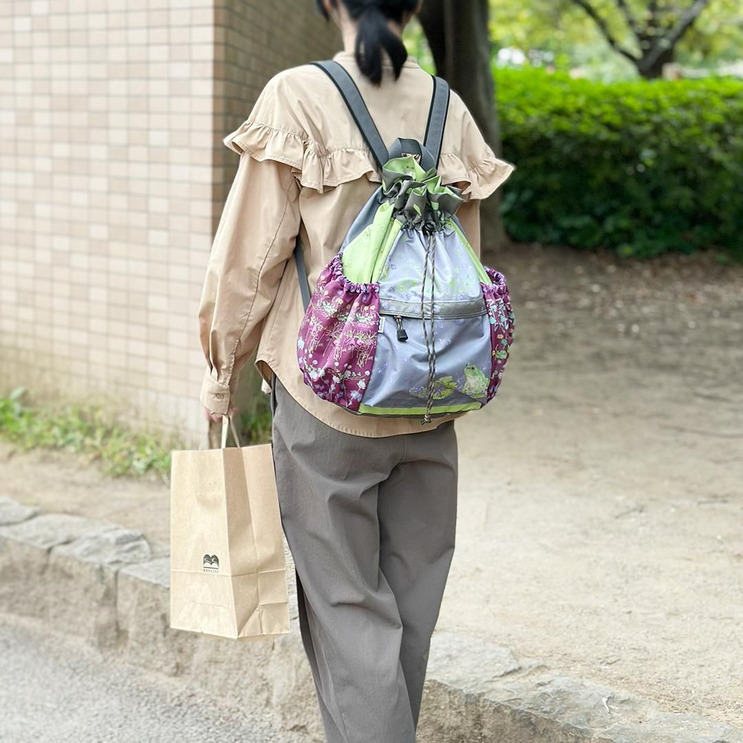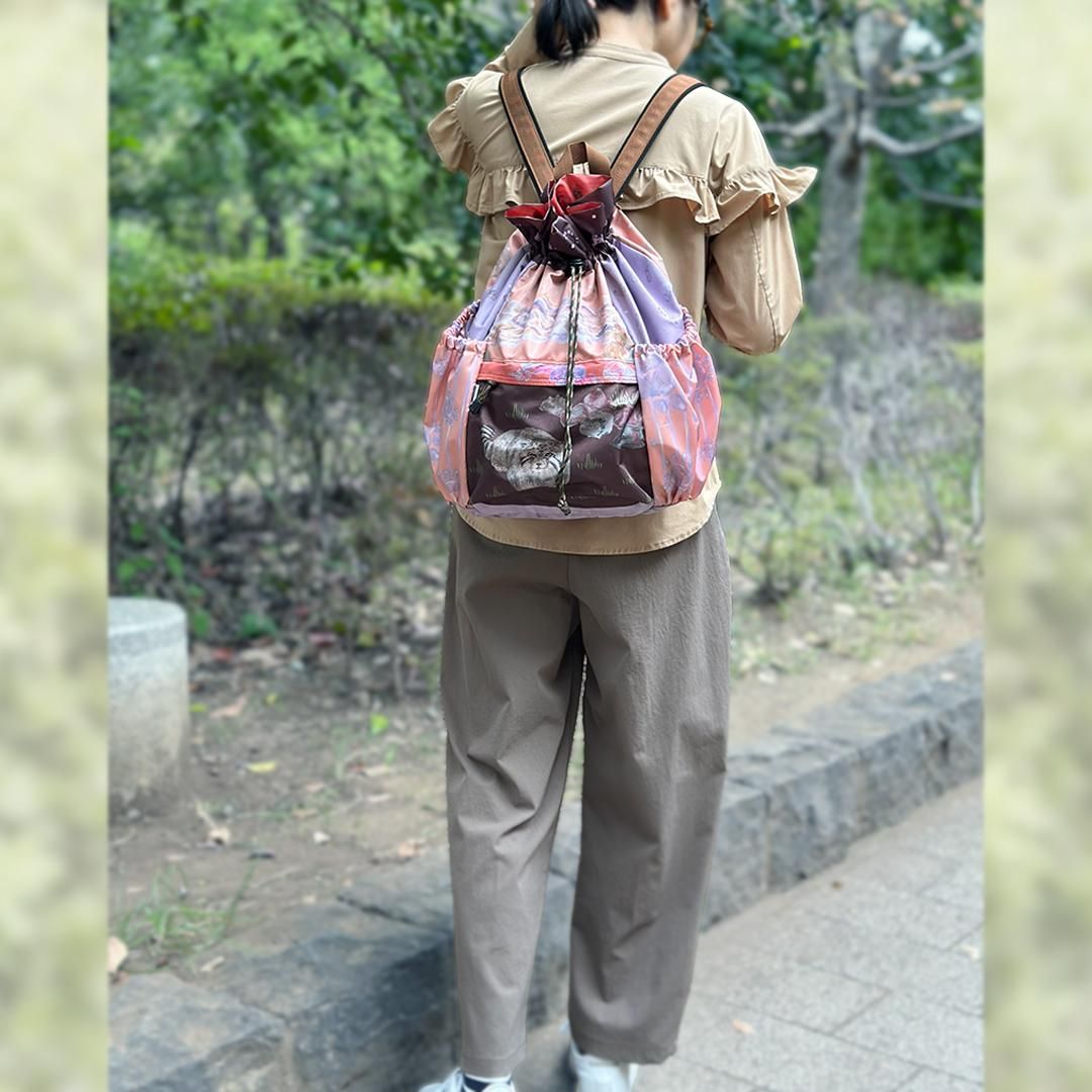 | サイズ | 横:約23cm 高さ:約41cm まち:約12cm 底〜絞りまでの高さ:約33cm ショルダーベルト長さ:約46〜102cm ショルダーベルト幅:約3.5cm |