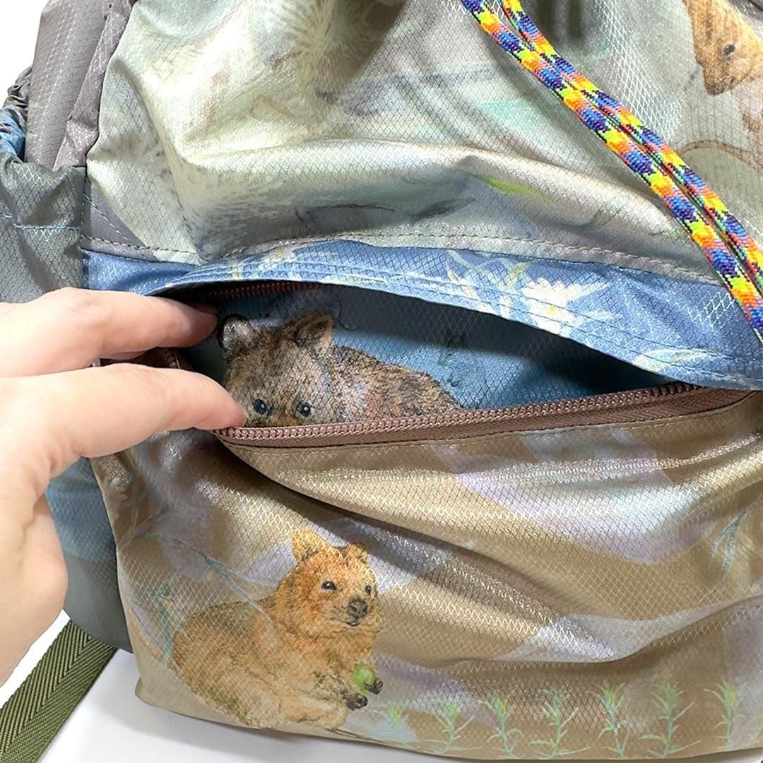 こんなにアウトドアな素材に、愛らしい生物のプリント。。。このギャップを楽しんでいただけるWREAZOOらしいナップサック!