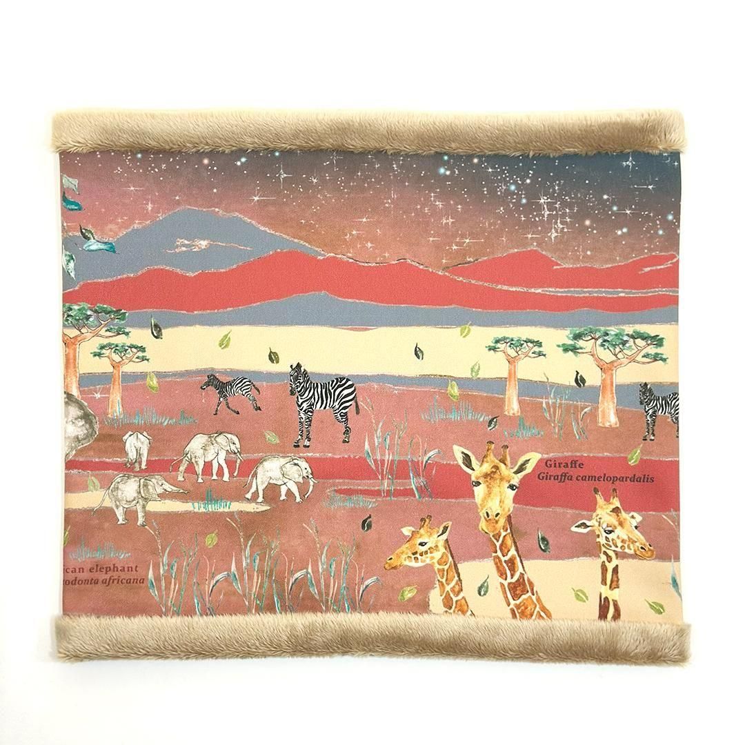 ※手描きの水彩画が特徴のプリントです。所々に色むら感や擦れ感、にじみ感がありますが、すべて手描きで描かれたものをそのままプリント表現したものです。